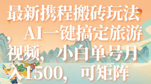 最新携程搬砖玩法,AI一键搞定旅游视频,小白单号月入1500,可矩阵