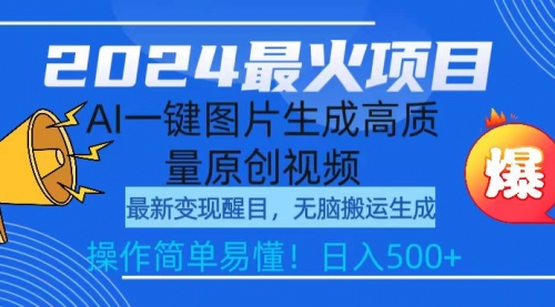 2024最火项目,AI一键图片生成高质量原创视频,无脑搬运,简单操作日入500+
