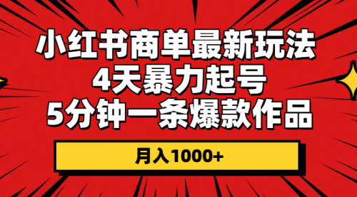 小红书商单最新玩法4天暴力起号5分钟一条爆款作品
