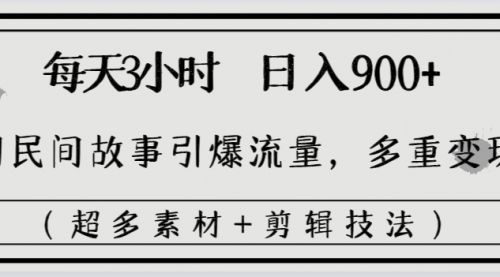 每天三小时日入900+,用民间故事引爆流量,多重变现(超多素材+剪辑技法)