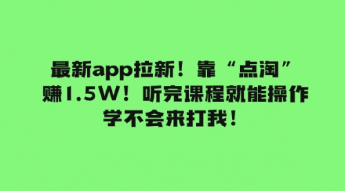 最新app拉新!靠“点淘”赚1.5W!听完课程就能操作!学不会来打我!