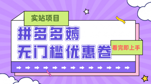 拼多多最新薅无门槛优惠卷项目,0成本,目前还能做,一单在50-500(仅揭秘)