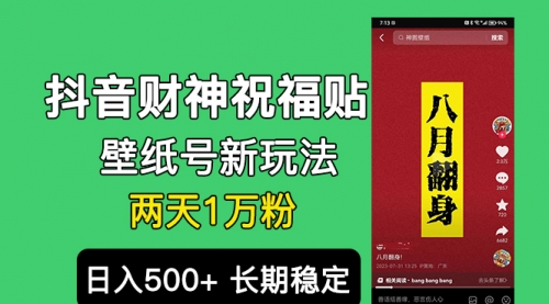 抖音财神祝福壁纸号新玩法,2天涨1万粉,日入500+不用抖音实名可多号矩阵