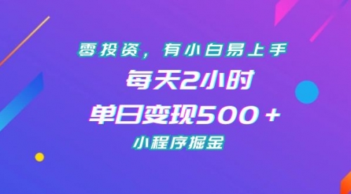 零投资,有小白易上手,每天2小时,单日变现500+,小程序掘金