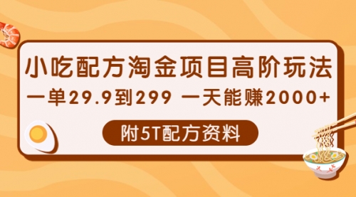小吃配方淘金项目高阶玩法:一单29.9到299一天能赚2000+【附5T配方资料】