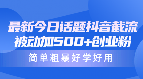 最新今日话题抖音截流,每天被动加500+创业粉,简单粗暴好学好用