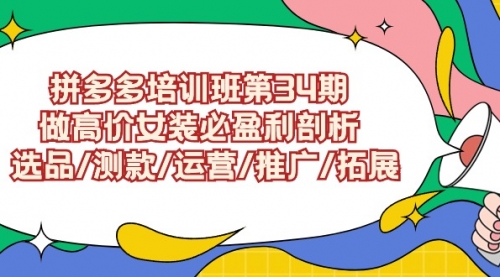 拼多多培训班第34期:做高价女装必盈利剖析选品/测款/运营/推广/拓展