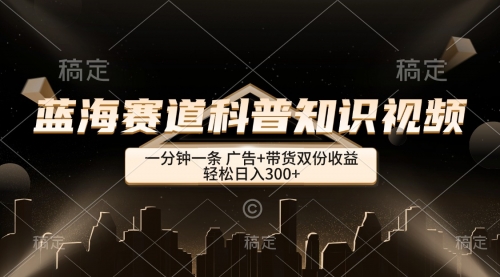蓝海赛道科普知识类视频,一分钟一条,广告+带货双份收益,轻松日入300+