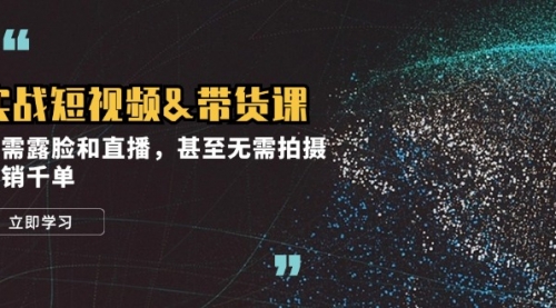 实战短视频&带货课,无需露脸和直播,甚至无需拍摄,日销千单