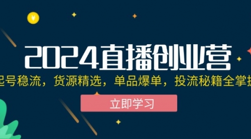 2024直播创业营:起号稳流,货源精选,单品爆单,投流秘籍全掌握