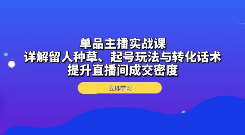 单品主播实战课:详解留人种草、起号玩法与转化话术,提升直播间成交密度