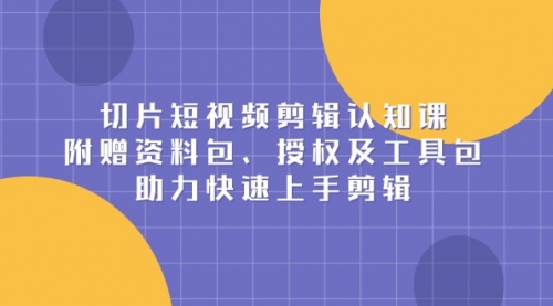 切片短视频剪辑认知课,附赠资料包、授权及工具包,助力快速上手剪辑