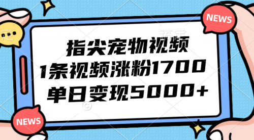 指尖宠物视频,1条视频涨粉1700,单日变现5000+
