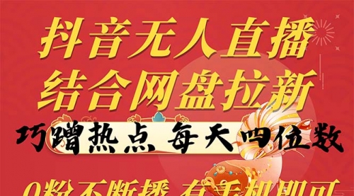 抖音无人直播,结合网盘拉新,巧蹭热点,每天四位数,0粉不断播