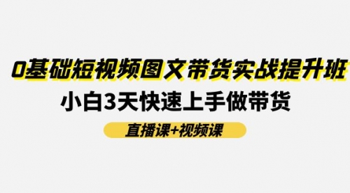 0基础短视频图文带货实战提升班(直播课+视频课):小白3天快速上手做带货