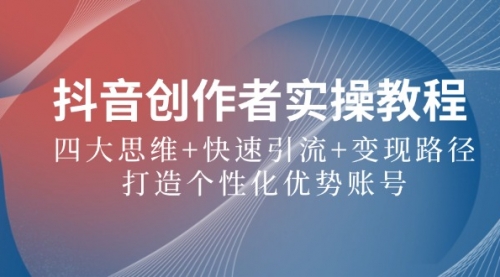 抖音创作者实操教程:四大思维+快速引流+变现路径,打造个性化优势账号