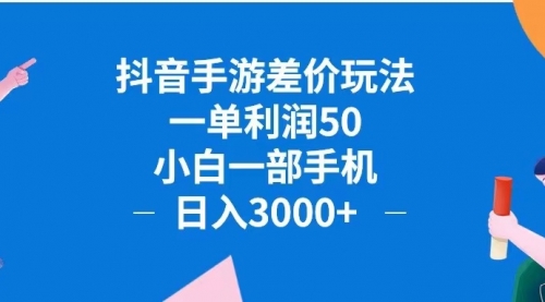 抖音手游差价玩法,一单利润50,小白一部手机日入3000+