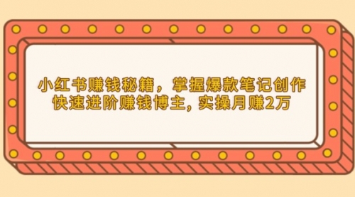 小红书赚钱秘籍,掌握爆款笔记创作,快速进阶赚钱博主,实操月赚2万