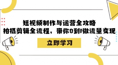 短视频制作与运营全攻略:拍摄剪辑全流程,带你0到1做流量变现