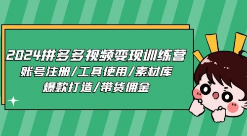 2024拼多多视频变现训练营,账号注册/工具使用/素材库/爆款打造/带货佣金