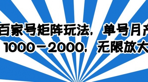 百家号矩阵玩法,单号月产1000-2000,无限放大