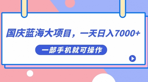 国庆蓝海大项目,一天日入7000+,一部手机就可操作