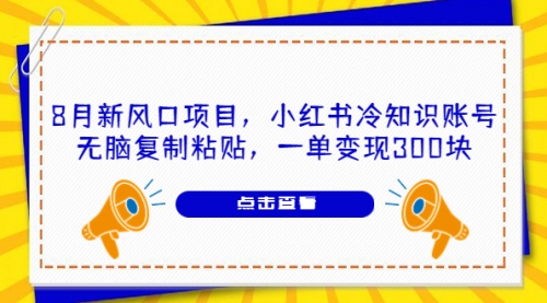 8月新风口项目,小红书冷知识账号,无脑复制粘贴,一单变现300块
