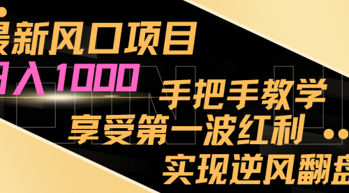 最新风口项目,日入过千,抓住当下风口,享受第一波红利,实现逆风翻盘