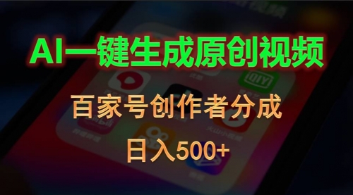 AI一键生成原创视频,百家号创作者分成,日入500+