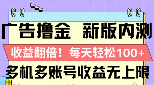 广告撸金新版内测,收益翻倍!每天轻松100+
