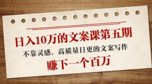 日入10万的文案课第五期,不靠灵感,高质量日更的文案写作,赚下一个百万