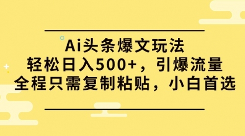 Ai头条爆文玩法,轻松日入500+,引爆流量全程只需复制粘贴