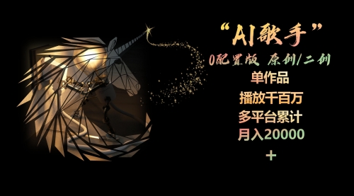 AI歌手,0配置版,原创/二创,单作品播放千百万,多平台累计,月入20000+
