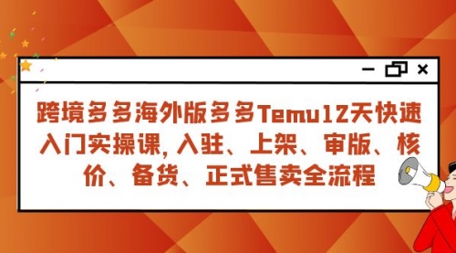 跨境多多海外版多多Temu12天快速入门实战课,从入驻上架到正式售卖全流程