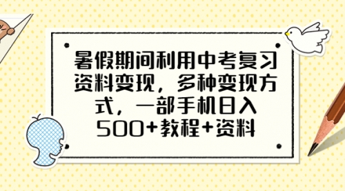 暑假期间利用中考复习资料变现,多种变现方式,一部手机一天500+教程+资料