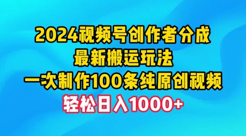 视频号创作者分成,最新搬运玩法,一次制作100条纯原创视频