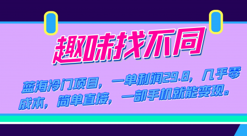 蓝海冷门项目,趣味找不同,一单利润29.8,几乎零成本,一部手机就能变现