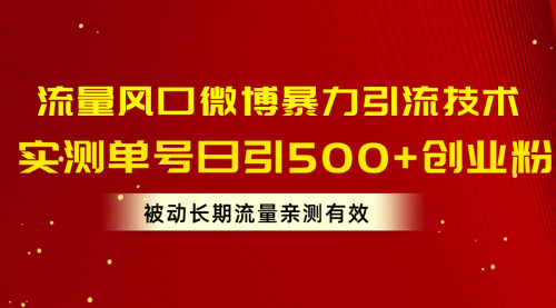 流量风口微博暴力引流技术,单号日引500+创业粉,被动长期流量