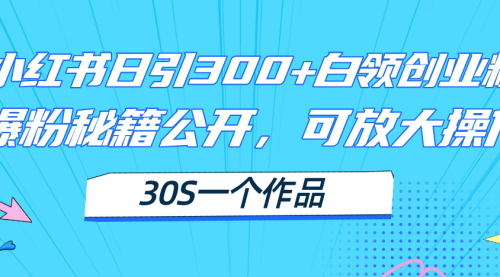 小红书日引300+高质白领创业粉,可放大操作,爆粉秘籍