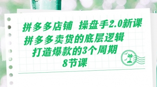 拼多多店铺操盘手2.0新课,拼多多卖货的底层逻辑,打造爆款的3个周期-8节