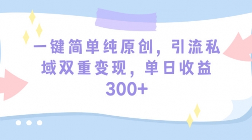 一键简单纯原创,引流私域双重变现,单日收益300+(教程+素材)