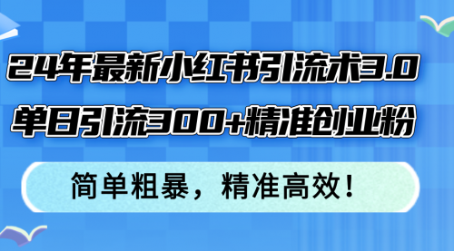 24年最新小红书引流术3.0,单日引流300+精准创业粉