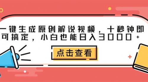 一键生成原创解说视频,十秒钟即可搞定,小白也能日入3000+