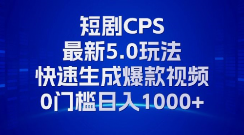 11月最新短剧CPS玩法,快速生成爆款视频,小白0门槛轻松日入1000+