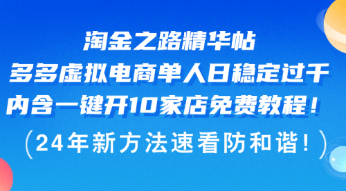 淘金之路精华帖多多虚拟电商单人日稳定过千