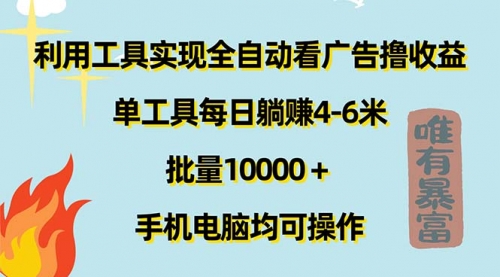 利用工具实现全自动看广告撸收益,单工具每日躺赚4-6米