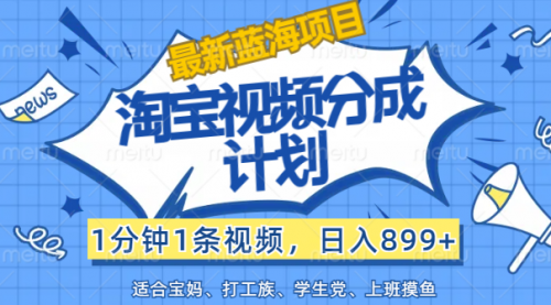淘宝视频分成计划,1分钟1条视频,日入899+