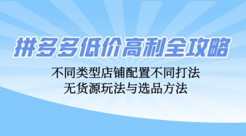 拼多多低价高利全攻略:不同类型店铺配置不同打法,无货源玩法与选品方法