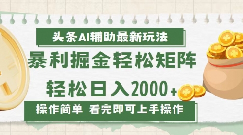 今日头条AI辅助掘金最新玩法,轻松矩阵日入2000+