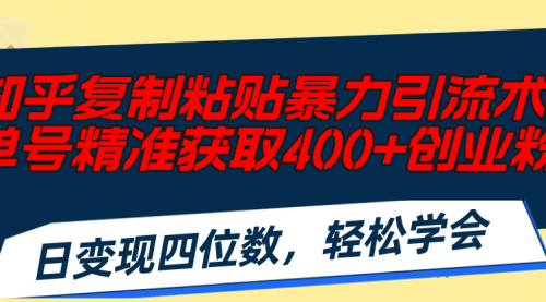 知乎复制粘贴暴力引流术,单号精准获取400+创业粉